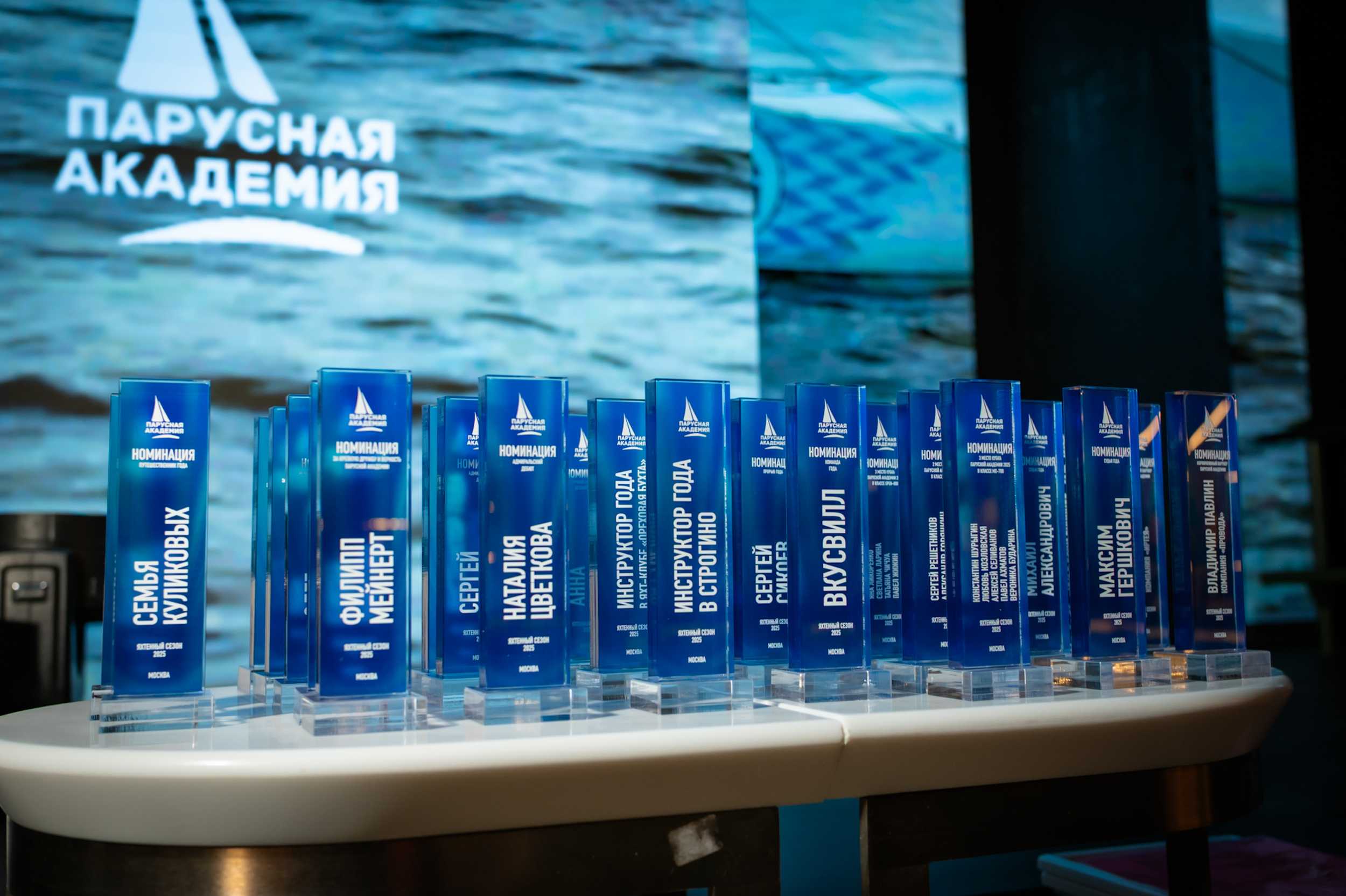 После приветственного слова прошла традиционная церемония награждения. В этом году мы побили рекорд по количеству номинаций – их было более 30! Мы отметили яхтсменов, учеников, инструкторов «Парусной Академии» и всех тех, кто особенно ярко проявил себя в этом сезоне. Каждому лауреату вручили памятную статуэтку и подарки от партнёров.